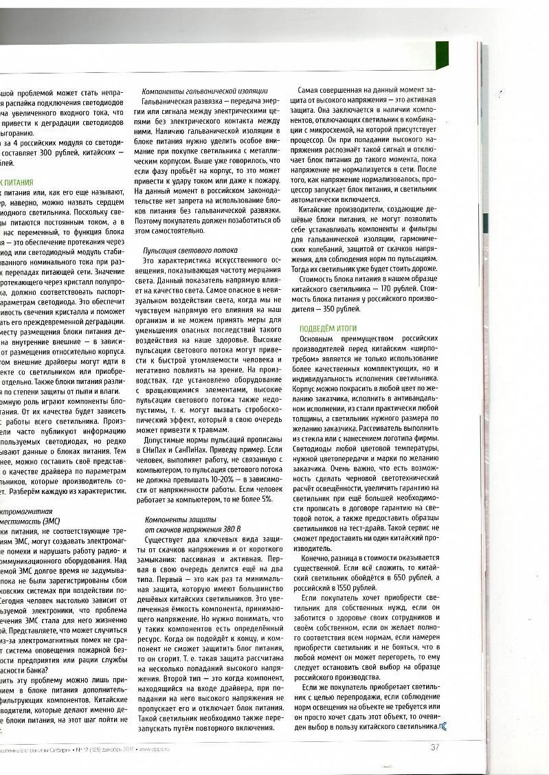 Если покупатель хочет приобрести светильник для собственных нужд, если он заботится о здоровье своих сотрудников и своём собственном, если он желает полного соответствия всем нормам, если намерен приобрести светильник и не бояться, что в любой момент он может перегореть, то ему следует остановить свой выбор на образце российского производства.